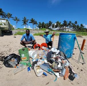<--- Plastics within a raked beach